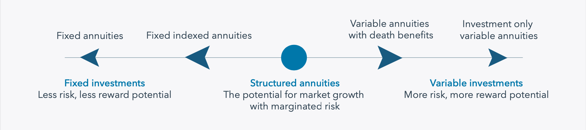 The above graphic is for illustrative purposes, does not represent all of the features available in the structured annuity market, and may include some terms and/or features that are not available in all states performance is not indicative of future results. Future results are not guaranteed.