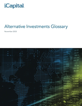 The information contained herein is an opinion only, as of the date indicated, and should not be relied upon as the only important information available. Any prediction, projection or forecast on the economy, stock market, bond market or the economic trends of the markets is not necessarily indicative of the future or likely performance. The information contained herein is subject to change, incomplete, and may include information and/or data obtained from third party sources that iCapital believes, but does not guarantee, to be accurate. iCapital considers this third-party data reliable, but does not represent that it is accurate, complete and/or up to date, and it should not be relied on as such. iCapital makes no representation as to the accuracy or completeness of this material and accepts no liability for losses arising from the use of the material presented. No representation or warranty is made by iCapital as to the reasonableness or completeness of such forward-looking statements or to any other financial information contained herein.