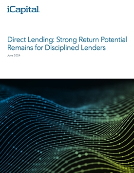 This higher-for-longer scenario suggests higher return potential for direct lending should prevail, where yields in the 12% range are possible. The Cliffwater Direct Lending Index (CDLI), an index of roughly 15,000 middle market direct loans, returned 12.1% in 2023.4 Even as spreads — which typically range 500-700 basis points above benchmark rates — have narrowed slightly, they are still above levels seen prior to the 2022-23 Fed rate hike campaign.