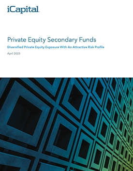 The information contained herein is an opinion only, as of the date indicated, and should not be relied upon as the only important information available. Any prediction, projection or forecast on the economy, stock market, bond market or the economic trends of the markets is not necessarily indicative of the future or likely performance. The information contained herein is subject to change, incomplete, and may include information and/or data obtained from third party sources that iCapital believes, but does not guarantee, to be accurate. iCapital considers this third-party data reliable, but does not represent that it is accurate, complete and/or up to date, and it should not be relied on as such. iCapital makes no representation as to the accuracy or completeness of this material and accepts no liability for losses arising from the use of the material presented. No representation or warranty is made by iCapital as to the reasonableness or completeness of such forward-looking statements or to any other financial information contained herein.