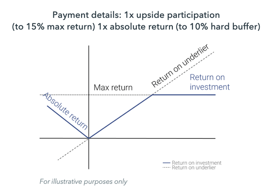 • Payment even if the underlier return is negative, as long as negative return is not below the hard buffer level at maturity.